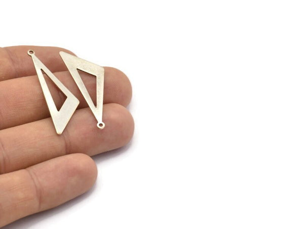 Gümüş Üçgen Charm, 1 Döngülü 10 Antik Gümüş Kaplama Pirinç Üçgen Charm, Charmlar, Küpeler (38x12x0,80 mm) D1127 H1029