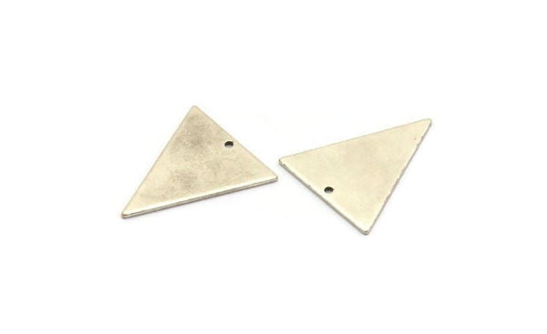 Gümüş Üçgen Charm, 1 Delikli 6 Antik Gümüş Kaplama Pirinç Üçgen Charm (28x22x1mm) BS 2349