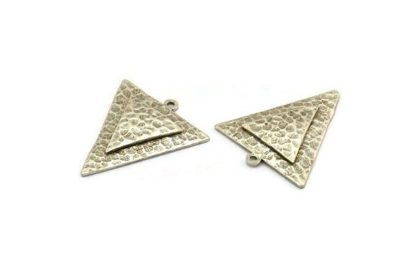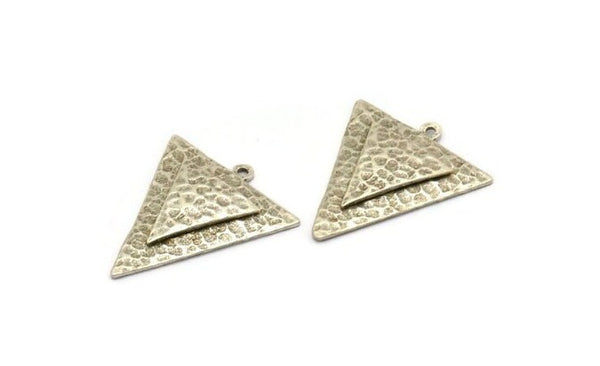 Antik Gümüş Kaplama Pirinç ve Ham Bakır Üçgen Charm 1 Döngülü
