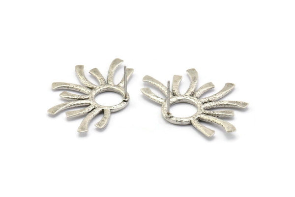 Çivi Küpe, 2 Antik Gümüş Kaplama Pirinç, Gümüş Küpeler, Gümüş Çivi Küpeler (37x24mm) N1503 H1570