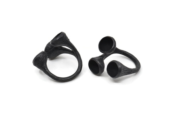 3 Taşlı Ayarlanabilir Oksitlenmiş Siyah Pirinç Yüzükler - Ped Boyutu 8mm