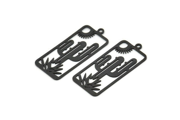 Siyah Kaktüs Tılsımı, 1 Döngülü 8 Oksitlenmiş Siyah Pirinç Kaktüs Tılsımı (33x15x0,60 mm) A4547