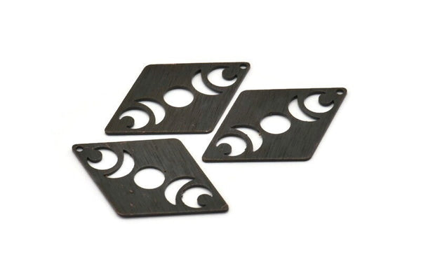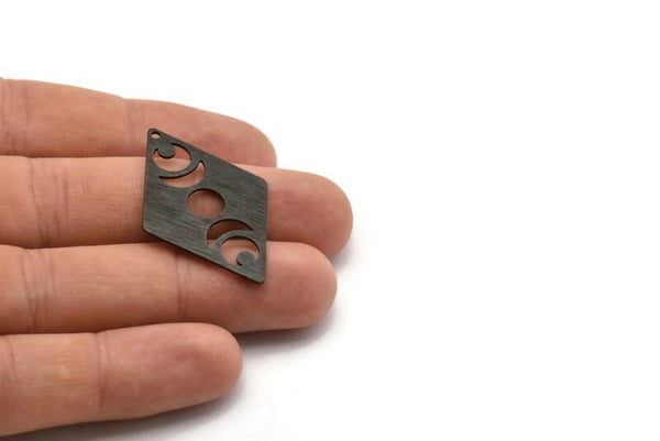 1 Delikli, Eşkenar Dörtgen Boşluklu Dokulu Oksitlenmiş Siyah Pirinç Ay Takıları