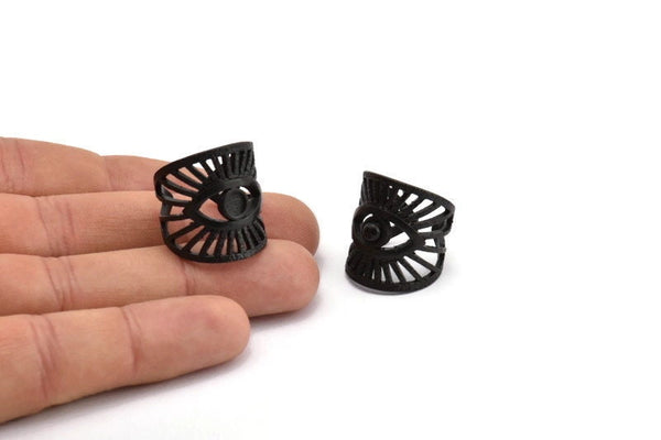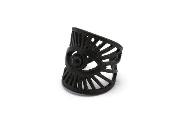 1 Taş Ayarlı Oksitlenmiş Siyah Pirinç Göz Yüzük - Ped Boyutu 4mm