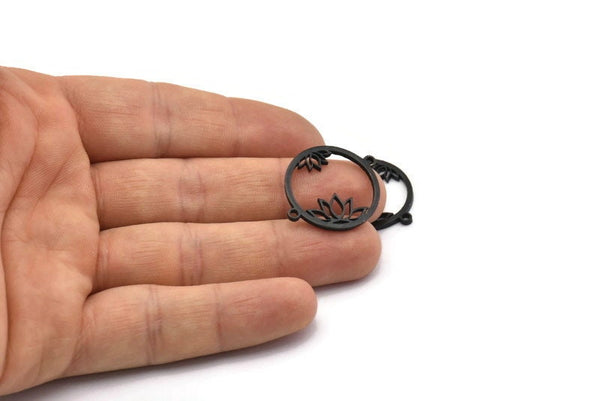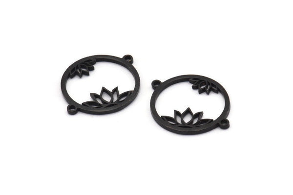 2 Halkalı Oksitlenmiş Siyah Pirinç Lotus Çiçeği Kolye