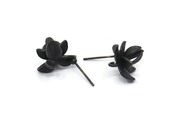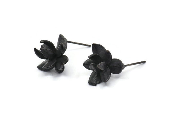 Oksitlenmiş Siyah Pirinç Çiçek Küpe