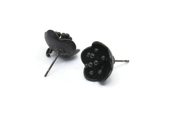 Siyah Çiçek Küpe, 1 Döngülü 2 Oksitlenmiş Siyah Pirinç Çiçek Küpe (16 mm) N1215