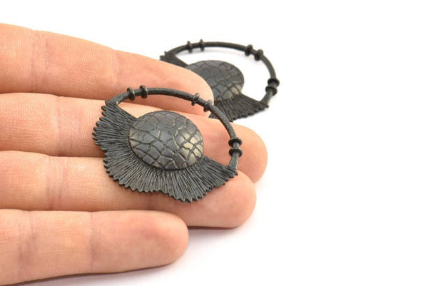 Oksitlenmiş Pirinç Siyah Zarif Yarı Çiçek Küpe Bulguları