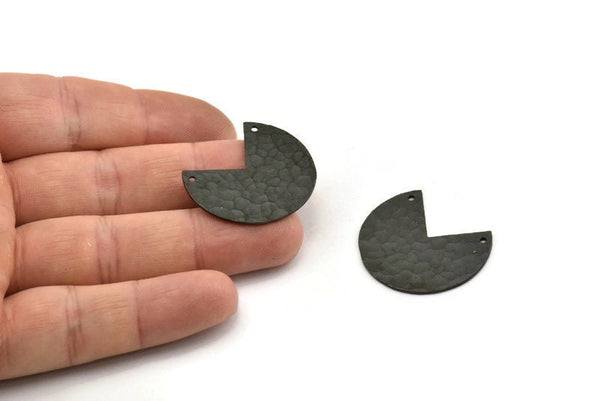 2 Delikli Çekiçle Dövülmüş Oksitlenmiş Siyah Pirinç Damgalı Boş Tılsımlar