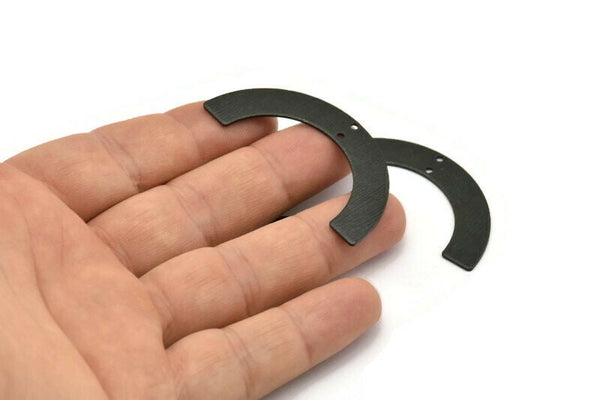 2 Delikli Dokulu Oksitlenmiş Siyah Pirinç Yarım Daire Kolye