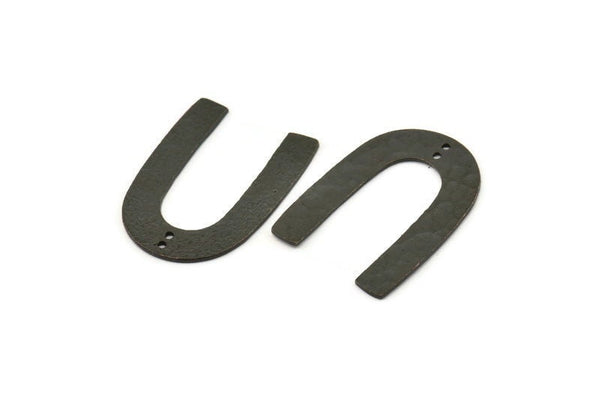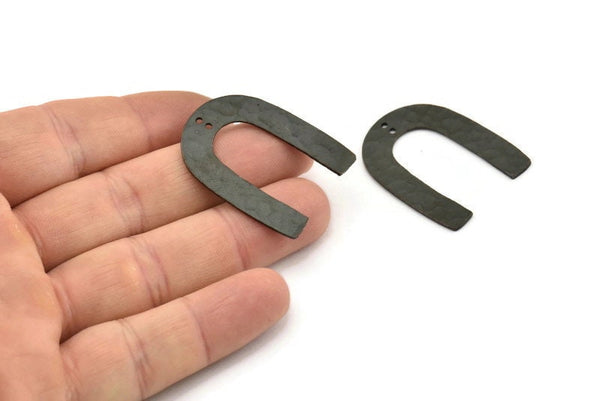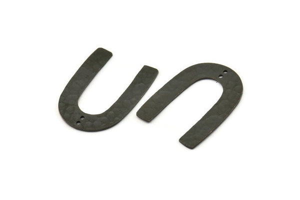 2 Delikli Çekiçle Dövülmüş Oksitlenmiş Siyah Pirinç U Şeklinde Kolye Uçları