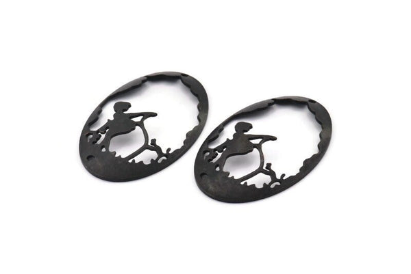 Siyah Kız Tılsımı, 1 Delikli 2 Oksitlenmiş Siyah Pirinç Kız Tılsımı, Kolye Uçları, Küpeler (45x30x1mm) D0644 H1241