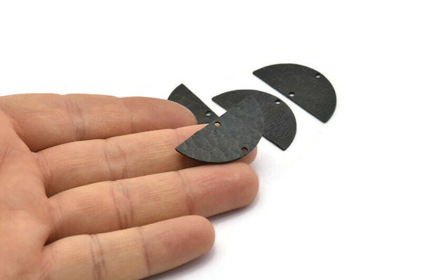 2 Delikli Çekiçle Dövülmüş Oksitlenmiş Siyah Pirinç Yarım Daire Boşluklar