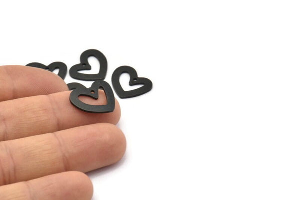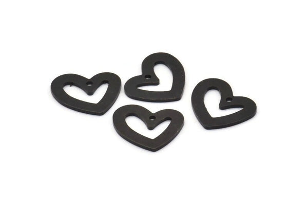 Siyah Kalp Tılsımı, 1 Delikli 8 Oksitlenmiş Siyah Pirinç Kalp Tılsımı (16x14x1mm) M864