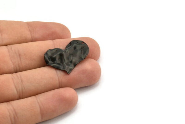Siyah Kalp Tılsımı, 1 Delikli 8 Oksitlenmiş Siyah Pirinç Kalp Tılsımı, Küpeler, Kolye Uçları, Bulgular (30x20x0,60 mm) D0768
