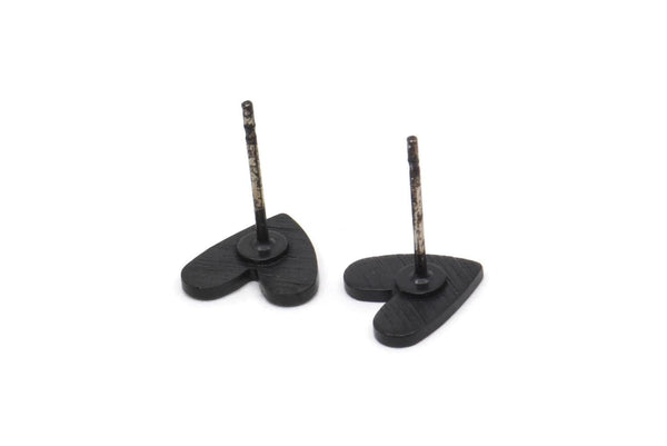 Dokulu Oksitlenmiş Siyah Pirinç Kalp Küpe