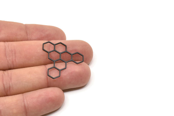 Siyah Altıgen Charm, 4 Oksitlenmiş Siyah Pirinç Altıgen Şekilli Charm, Küpe Parçaları, Geometrik Charmlar (28x27x0,80 mm) A6695