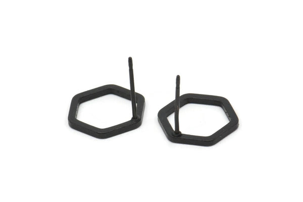 Oksitlenmiş Siyah Pirinç Altıgen Küpe