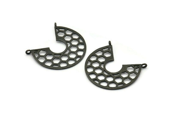 2 Halkalı Dokulu Oksitlenmiş Siyah Pirinç Petek Kolye