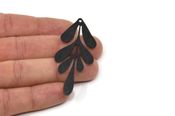 1 Delikli Oksitlenmiş Siyah Pirinç Dokulu Yaprak Küpe