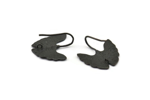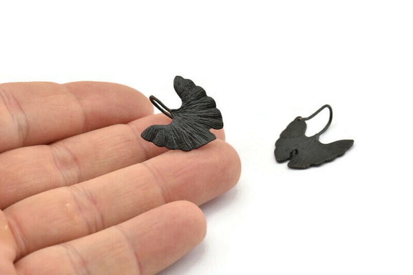 1 Halkalı Oksitlenmiş Siyah Pirinç Ginkgo Biloba Yaprağı Küpe