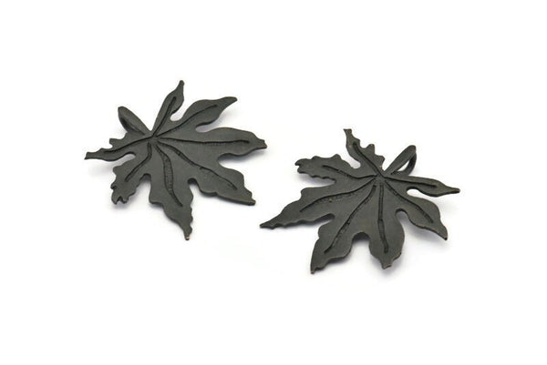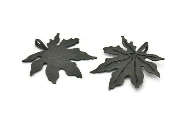 Siyah Yaprak Kolye, 1 Halkalı 2 Oksitlenmiş Siyah Pirinç Yaprak Kolye, Tılsımlar (37x1mm) V114
