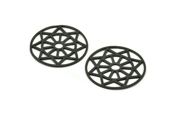 Siyah Mandala Tılsımı, 2 Dokulu Oksitlenmiş Siyah Pirinç Mandala Tılsımı, Kolye Uçları, Bulgular (37 mm) V096