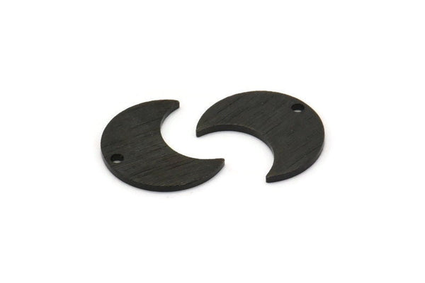 1 Delikli Dokulu Oksitlenmiş Siyah Pirinç Hilal Ay Takıları