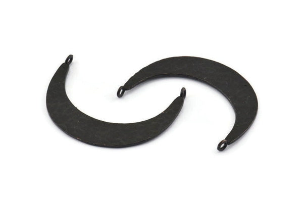 2 Halkalı Çekiçle Dövülmüş Oksitlenmiş Siyah Pirinç Hilal Kolye