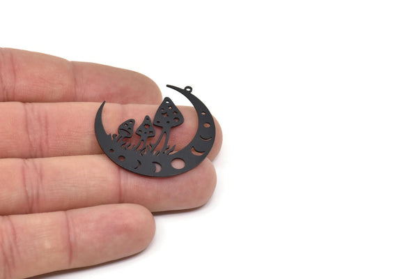 1 Döngülü Oksitlenmiş Siyah Pirinç Mantar ve Hilal Şekilli Tılsımlar