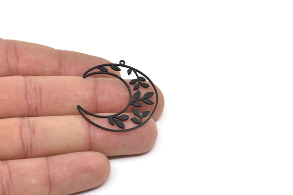1 Döngülü Oksitlenmiş Siyah Pirinç Yaprak Desenli Hilal Ay Takıları