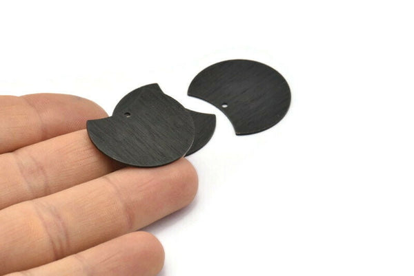 1 Delikli Dokulu Oksitlenmiş Siyah Pirinç Ay Takıları