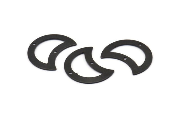 Siyah Ay Tılsımı, 2 Delikli, Boşluklu, Buluntulu 6 Oksitlenmiş Siyah Pirinç Ay Tılsımı (25x15x0,70 mm) M772