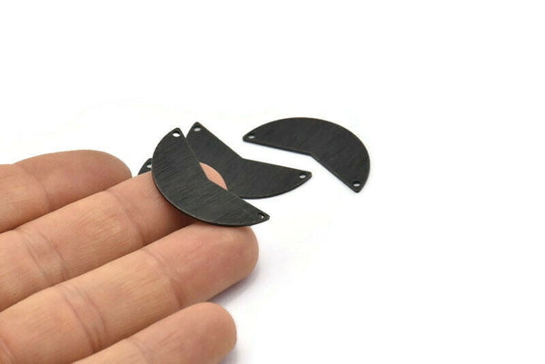 Siyah Ay Tılsımı, 2 Delikli 6 Dokulu Oksitlenmiş Siyah Pirinç Ay Tılsımı, Boşluklar (31x11x0,80 mm) M200