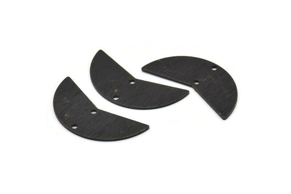 2 Delikli Dokulu Oksitlenmiş Siyah Pirinç Ay Takıları