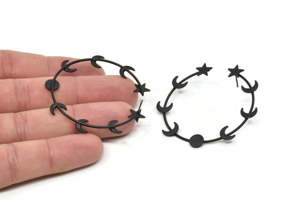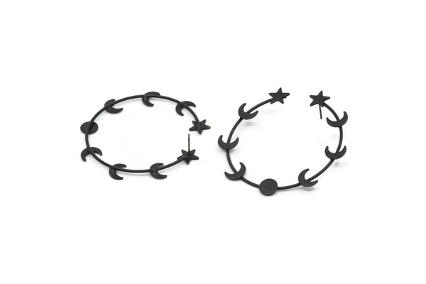Oksitlenmiş Siyah Pirinç Ay Evreleri Küpe