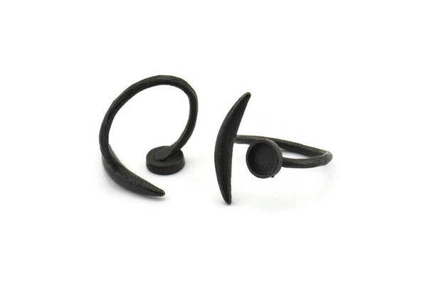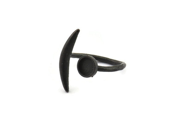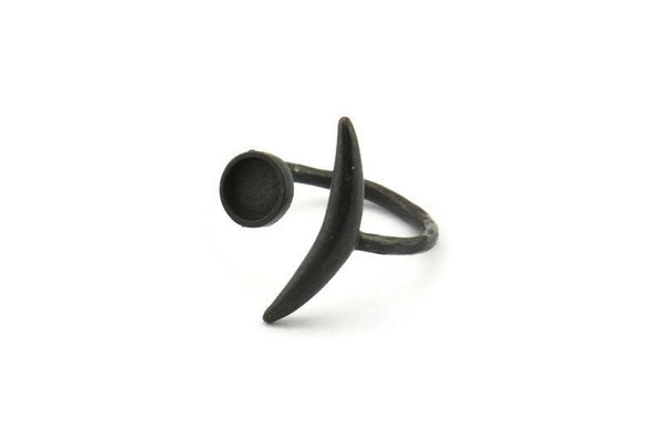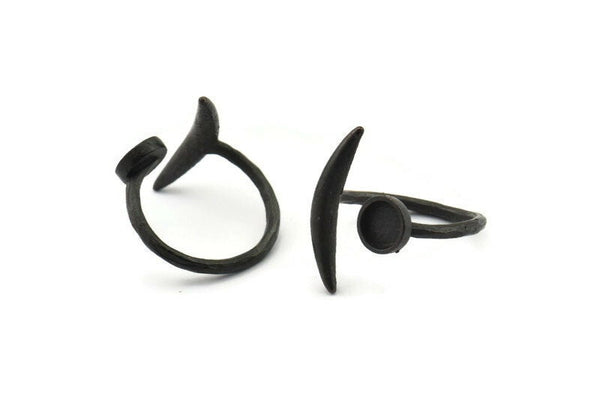 Siyah Ay Yüzüğü, 1 Taş Ayarlı 2 Oksitlenmiş Siyah Pirinç Ay Yüzüğü - Ped Boyutu 6 mm N1283