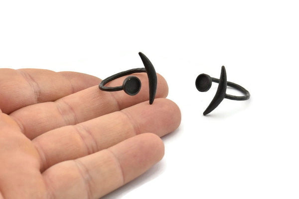 1 Taşlı Oksitlenmiş Siyah Pirinç Ay Yüzükleri - Ped Boyutu 6mm