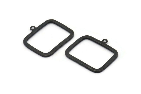 Siyah Dikdörtgen Charm, 1 Halkalı 2 Çekiçlenmiş Oksitlenmiş Siyah Pirinç Dikdörtgen Kolye (30x24x1,7 mm) BS 1869 H1317