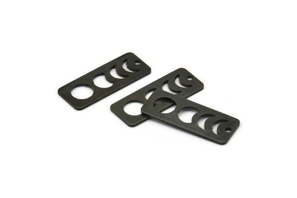 Siyah Dikdörtgen Charm, 1 Delikli 8 Oksitlenmiş Siyah Pirinç Ay Evreleri Charm'ı (25x10x0,80 mm) M01992 H0952
