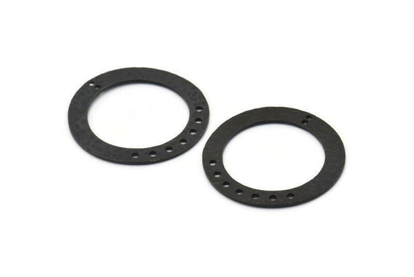 9 Delikli Çekiçle Dövülmüş Oksitlenmiş Siyah Pirinç Yuvarlak Tılsımlar
