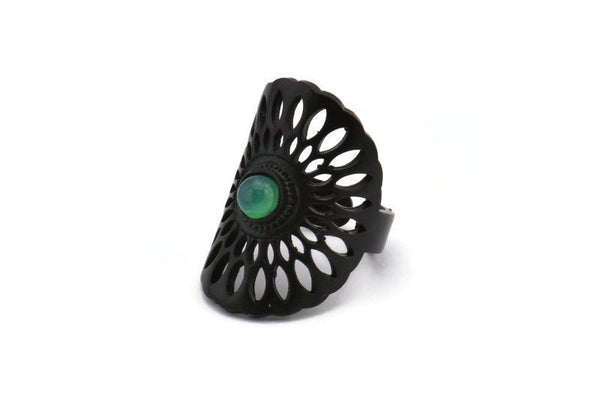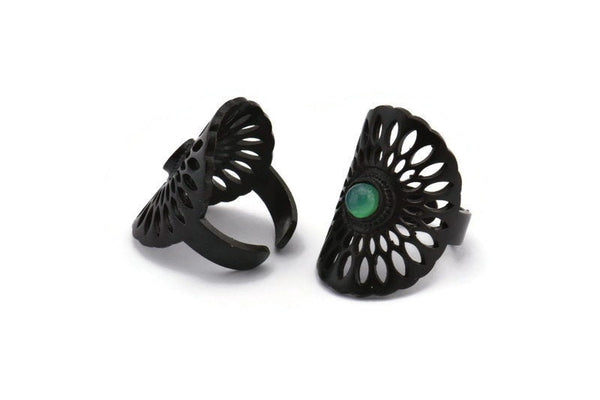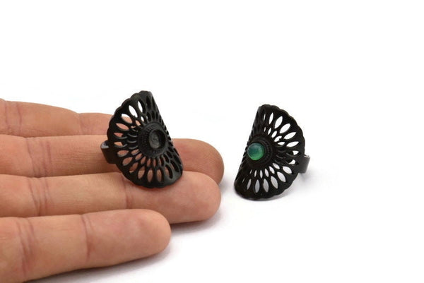 1 Taşlı Oksitlenmiş Siyah Pirinç Yüzük - Ped Boyutu 5mm