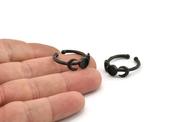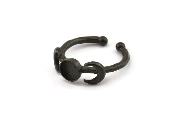 Siyah Yüzük Ayarları, 1 Taş Ayarlı 2 Oksitlenmiş Siyah Pirinç Ay ve Gezegen Yüzük - Ped Boyutu 6mm N1159