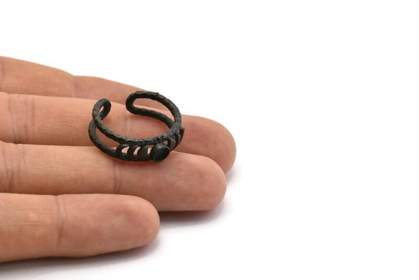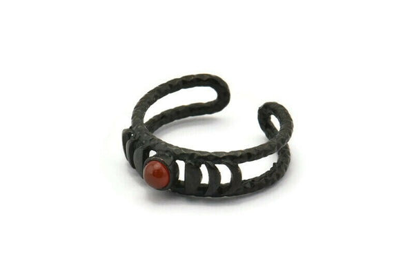 1 Taşlı Oksitlenmiş Siyah Pirinç Ay Evreleri Yüzüğü - Ped Boyutu 4mm