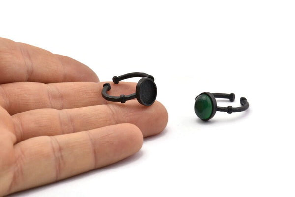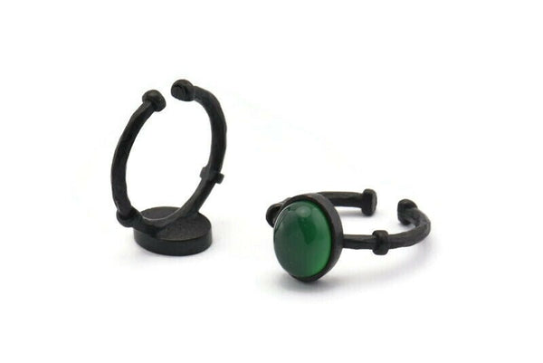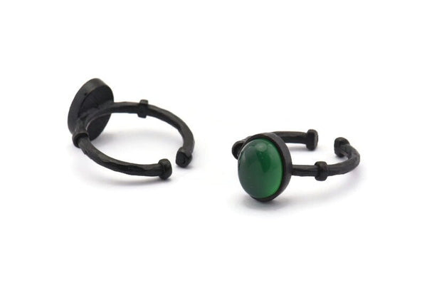1 Taşlı Oksitlenmiş Siyah Pirinç Oval Yüzük - Ped Boyutu 8x10mm
