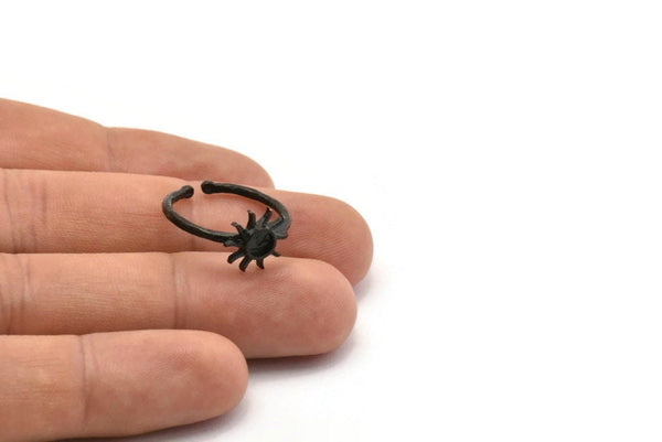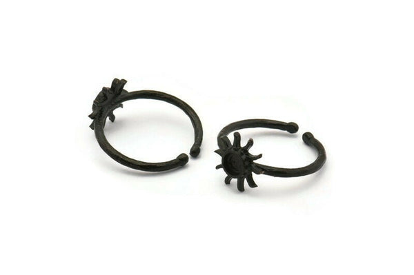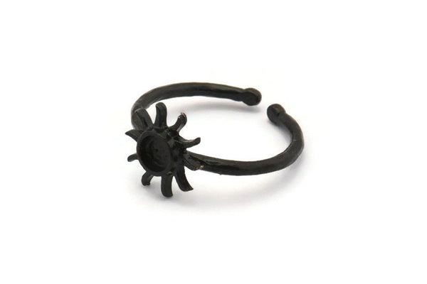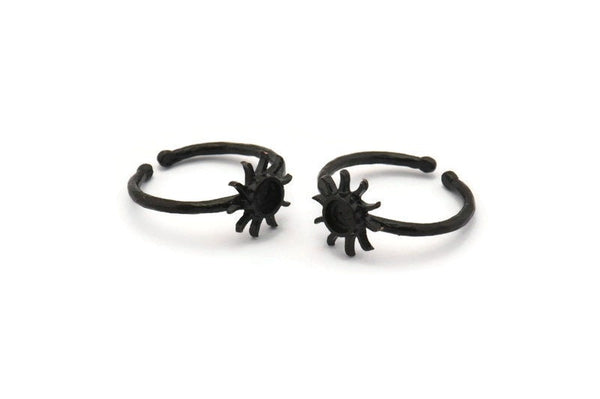 Siyah Halka Ayarları, 1 Taş Ayarlı 4 Oksitlenmiş Siyah Pirinç Güneş Halkası - Ped Boyutu 4 mm N1591 H0984
