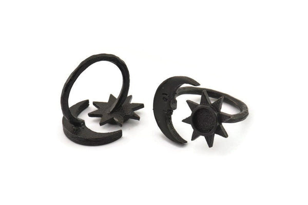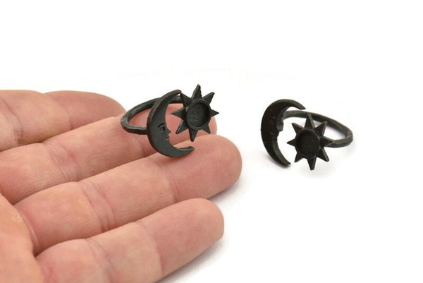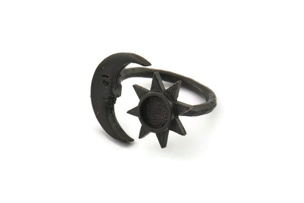 1 Taşlı Oksitlenmiş Siyah Pirinç Ay ve Güneş Yüzüğü - Ped Boyutu 6mm