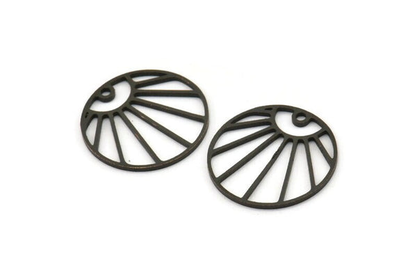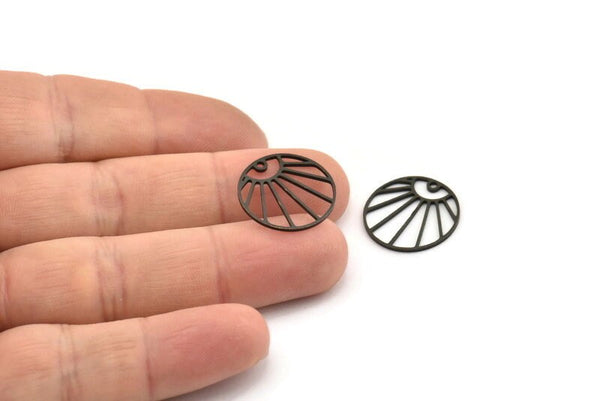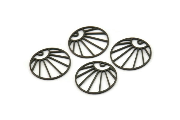 1 Delikli Oksitlenmiş Siyah Pirinç Yükselen Güneş Desenli Yuvarlak Şekilli Tılsımlar