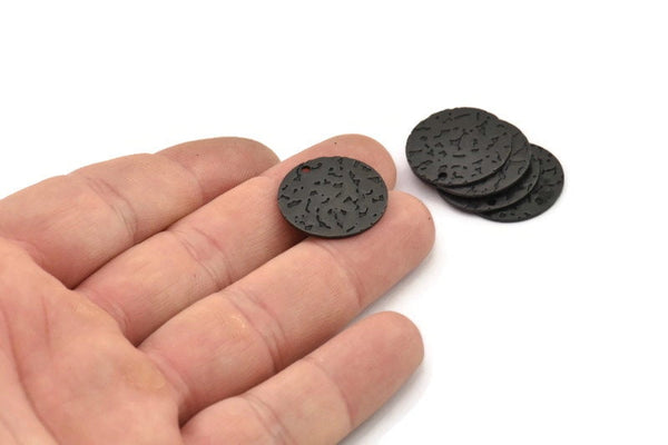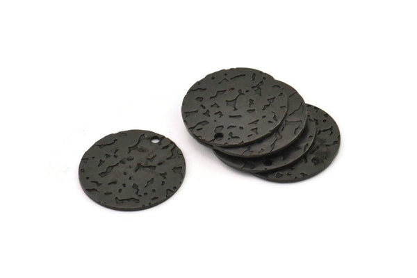 1 Delikli Çekiçle Dövülmüş Oksitlenmiş Siyah Pirinç Yuvarlak Tılsımlar