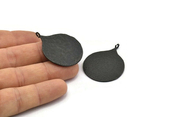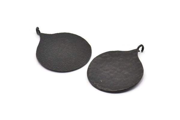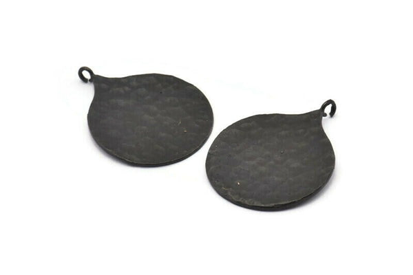 Siyah Yuvarlak Charm, Çekiçlenmiş Oksitlenmiş Siyah Pirinç Daire Kolye, 1 Halka, Bulgular (38,5x30x1 mm) BS 1963